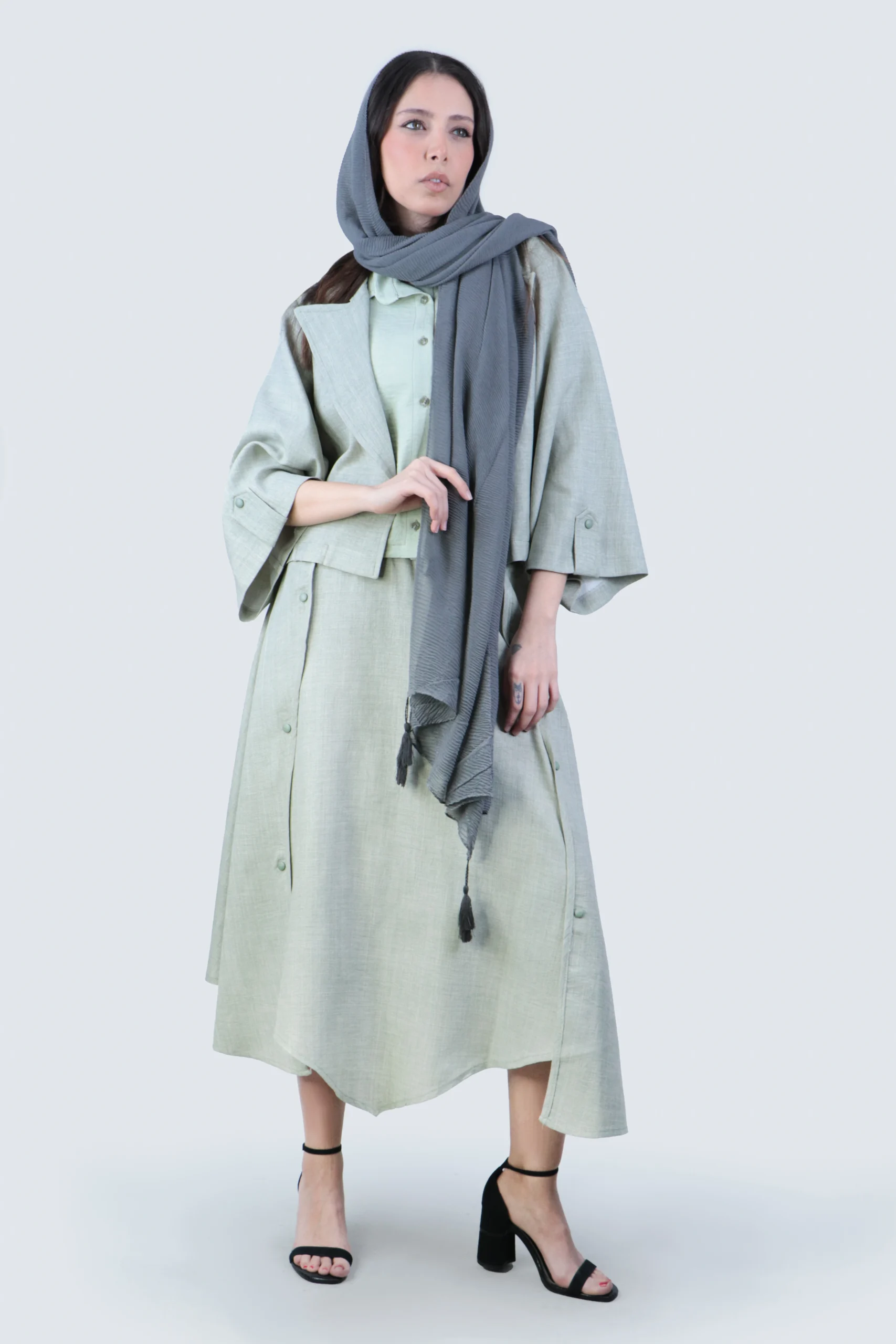 ست کت و دامن هلالی با پارچههای سبک و طراحی آزاد خود، بهترین انتخاب برای روزهای آفتابی و گرم بهار و تابستان است. این لباس به گونهای طراحی شده است که در عین زیبایی، از ایجاد گرما و تعریق زیاد جلوگیری کند و حس خنکی و سبکی را برای شما فراهم کند.