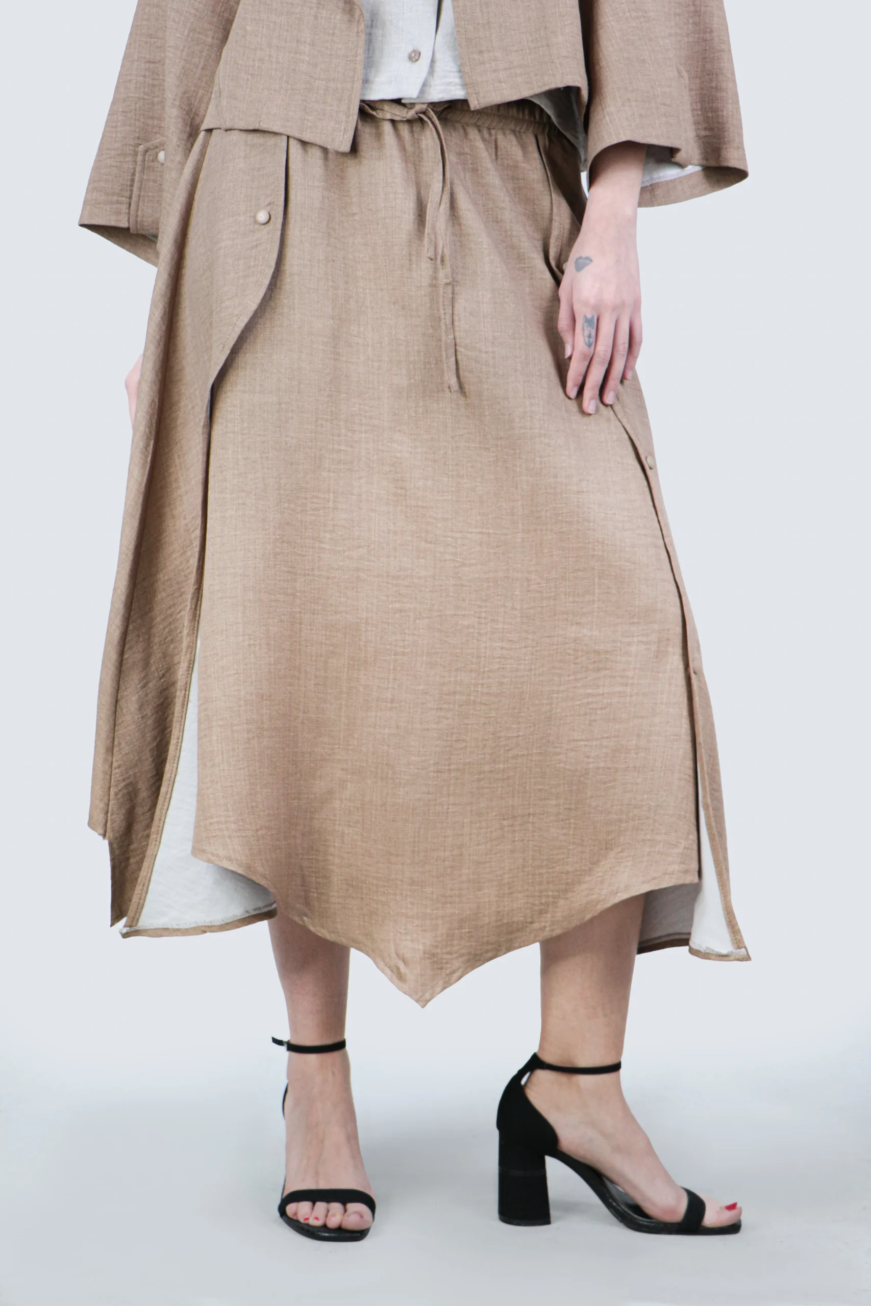 - جذابیت بصری: طراحی خاص و هلالی دامن باعث میشود که در هر موقعیتی بدرخشید.